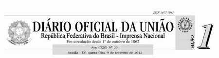 DOU nº 29, Seção 1, quinta-feira, de 09 de fevereiro de 2012, Página 23.