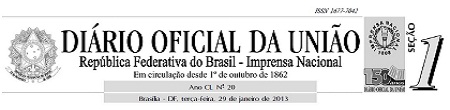 DOU 20, Seção 1, terça-feira, de 29 de janeiro de 2013, Páginas 17, 18 e 19.