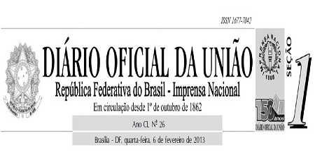 DOU 26, Seção 1, quarta-feira, de 06 de fevereiro de 2013, Páginas 56 e 57.
