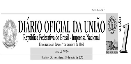 DOU 96, Seção 1, terça-feira, de 21 de maio de 2013, Páginas 29 e 30.