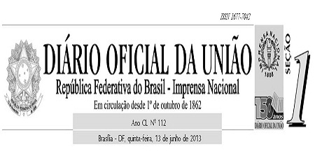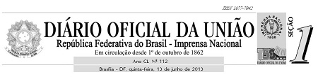 DOU 112, Seção 1, quinta-feira, de 13 de junho de 2013, Página 51.