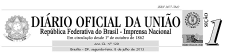 DOU 129, Seção 1, segunda-feira, de 08 de julho de 2013, Página 22.