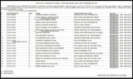 ? São 21 requerimentos em cada pauta, daqueles com ‘prioridade por recadastramento’ que irão a julgamento em 14 e 15/02/2017. Ainda não foi desta vez que vieram os nomes de pessoas amigas, Luiz Cláudio Longhi e Drª Regina Ribeiro.