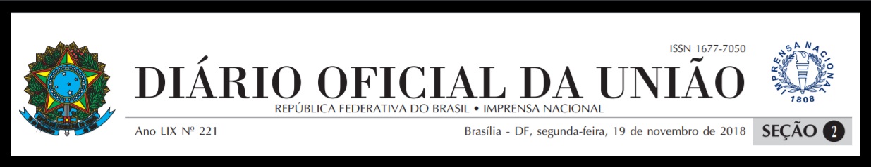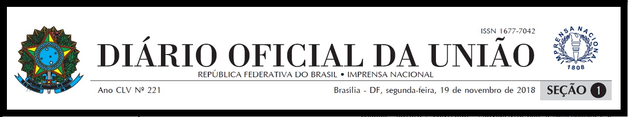 DOU nº 221, de 19-11-2018 – Anistiados Políticos Militares – DIA DA BANDEIRA + SÉRGIO MORO + ANISTIA POLÍTICA + CA/MJ E SEUS MISTÉRIOS + REVISÃO (RE 817338) & ATZDÃO (RE 553710) + JULGADOS DO STF + Parcerias + Charges do Dia