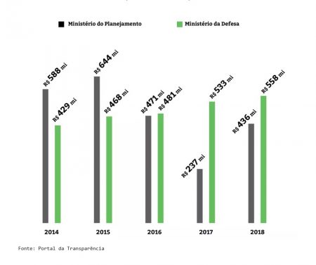 Apesar de os militares serem em menor número, os valores pagos a eles são proporcionalmente maiores. Em 2018, o Ministério do Planejamento, que faz o pagamento a civis, gastou R$ 436 milhões em indenizações. Já as Forças Armadas, juntas, despenderam R$ 558 milhões. A proporção varia a cada ano, devido a indenizações em prestações únicas ou a pagamentos retroativos.
