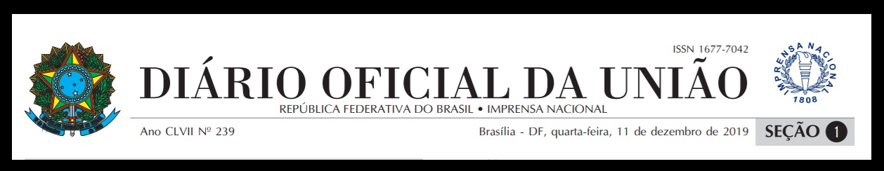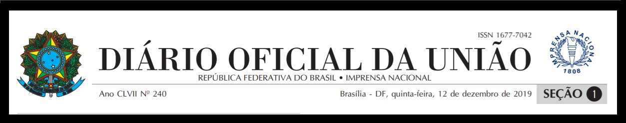 ★ No DOU desta segunda-feira (09/12/2019), terça-feira (10/12/2019) e desta sexta-feira (13/12/2019) nenhuma publicação relativa a Anistia Política e de interesse da Classe Cabos da FAB.