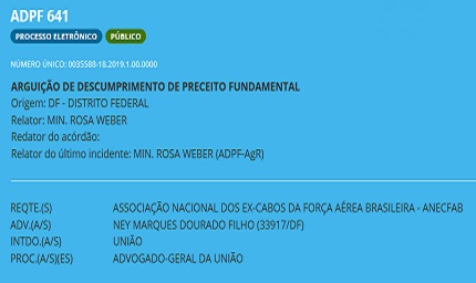 O objetivo deste pedido é para dar conhecimento a todos os ex-Cabos da FAB interessados no deslinde da ADPF/641 ainda tramitando no STF.