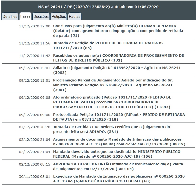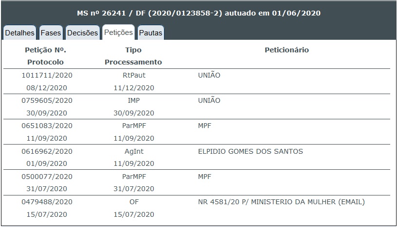 MANDADO DE SEGURANÇA Nº 26241 – DF (2020/0123858-2)