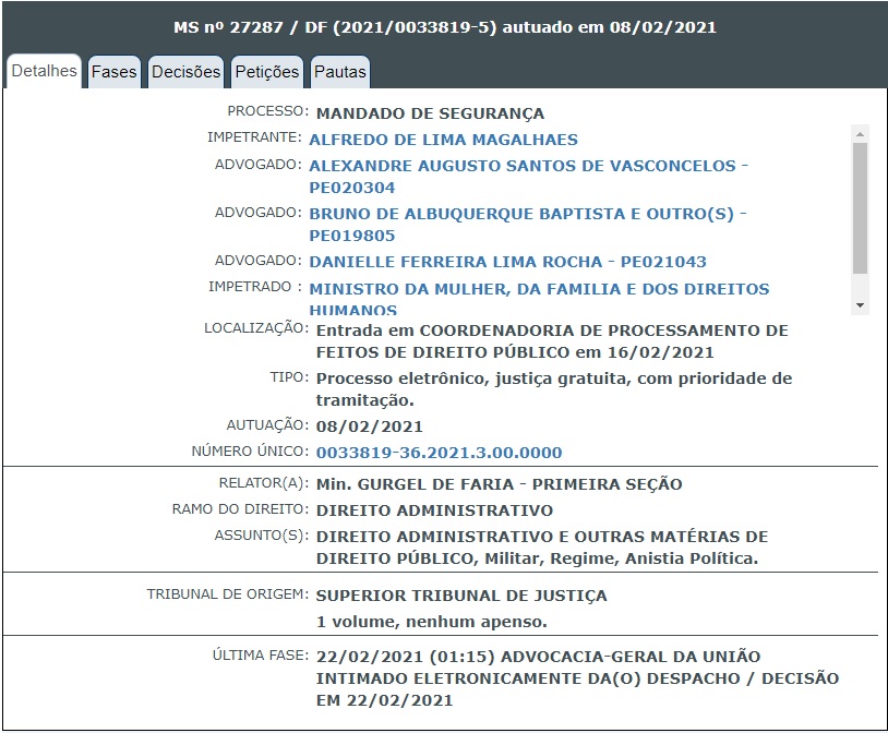 » No DOU nº 34 desta segunda-feira (22/02) – Diversas Publicações sobre Anistiados Políticos Militares da FAB – LIMINAR DO STJ + ANULAÇÕES & INDEFERIMENTOS + Página da CA/MMFDH + NOTÍCIAS EM DESTAQUES + RE 817338 + ADPF-777/2020 + VOTAÇÃO DOS PDL’S + PROMOÇÃO + ANISTIAS MANTIDAS + REVISÃO + Parcerias + Charges do Dia PORTAL DOS CABOS DA F.A.B. Atingidos Pela Portaria nº 1.104GM3/64: Um ato de exceção de natureza exclusivamente político.