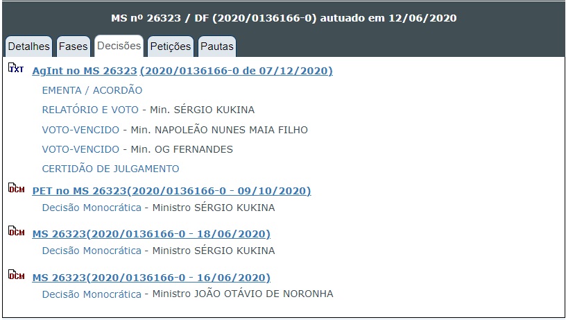 MS nº 26323 / DF (2020/0136166-0) autuado em 12/06/2020