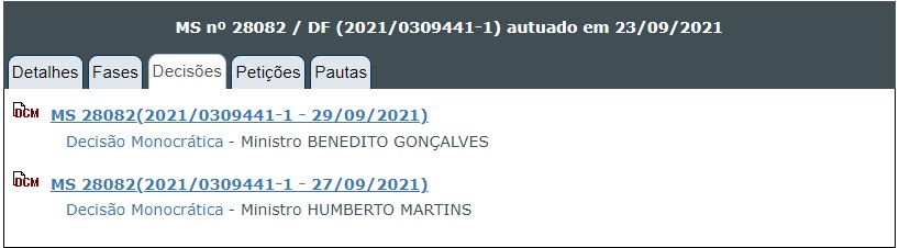 MANDADO DE SEGURANÇA Nº 28082 – DF (2021/0309441-1)