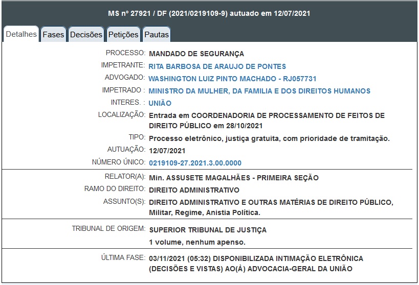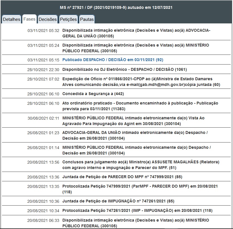 MANDADO DE SEGURANÇA Nº 27921 – DF (2021/0219109-9)